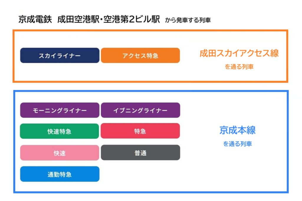 成田空港駅は、路線・列車種別・ブランドカラーが複雑に混在していて、初めて利用する人にとっては迷いやすい構造になっています。