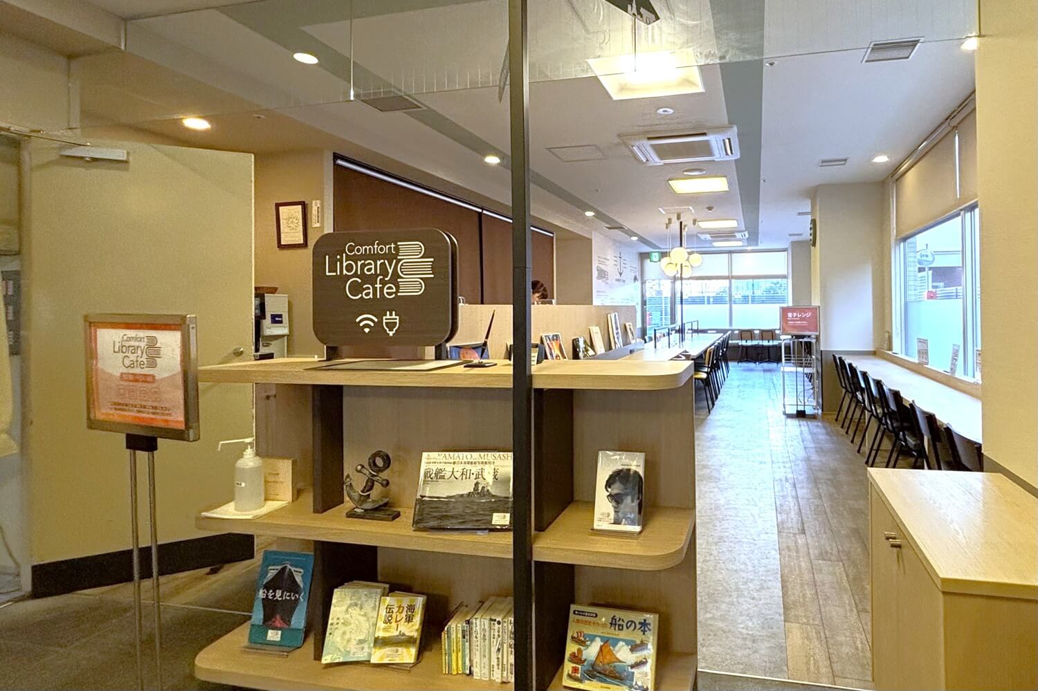 〈ライブラリーカフェ〉1階フロント奥にあり、10:00~24:00まで開放されています。チェックイン前やチェックアウト後も利用できるので、パソコン作業やちょっとした待ち時間にも使いやすいスペースです。
