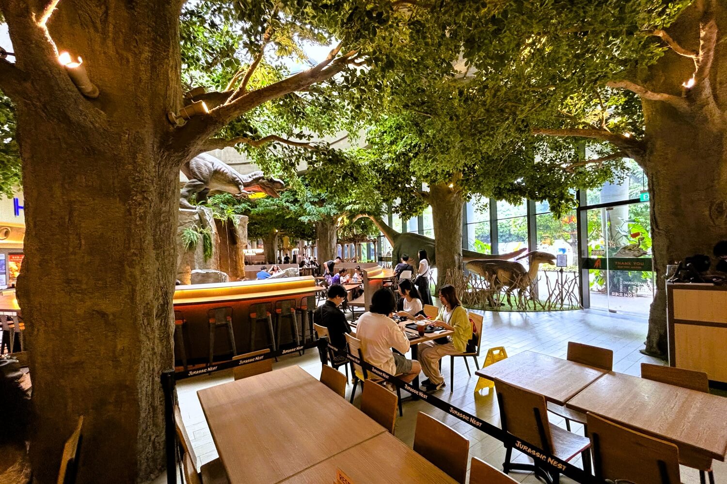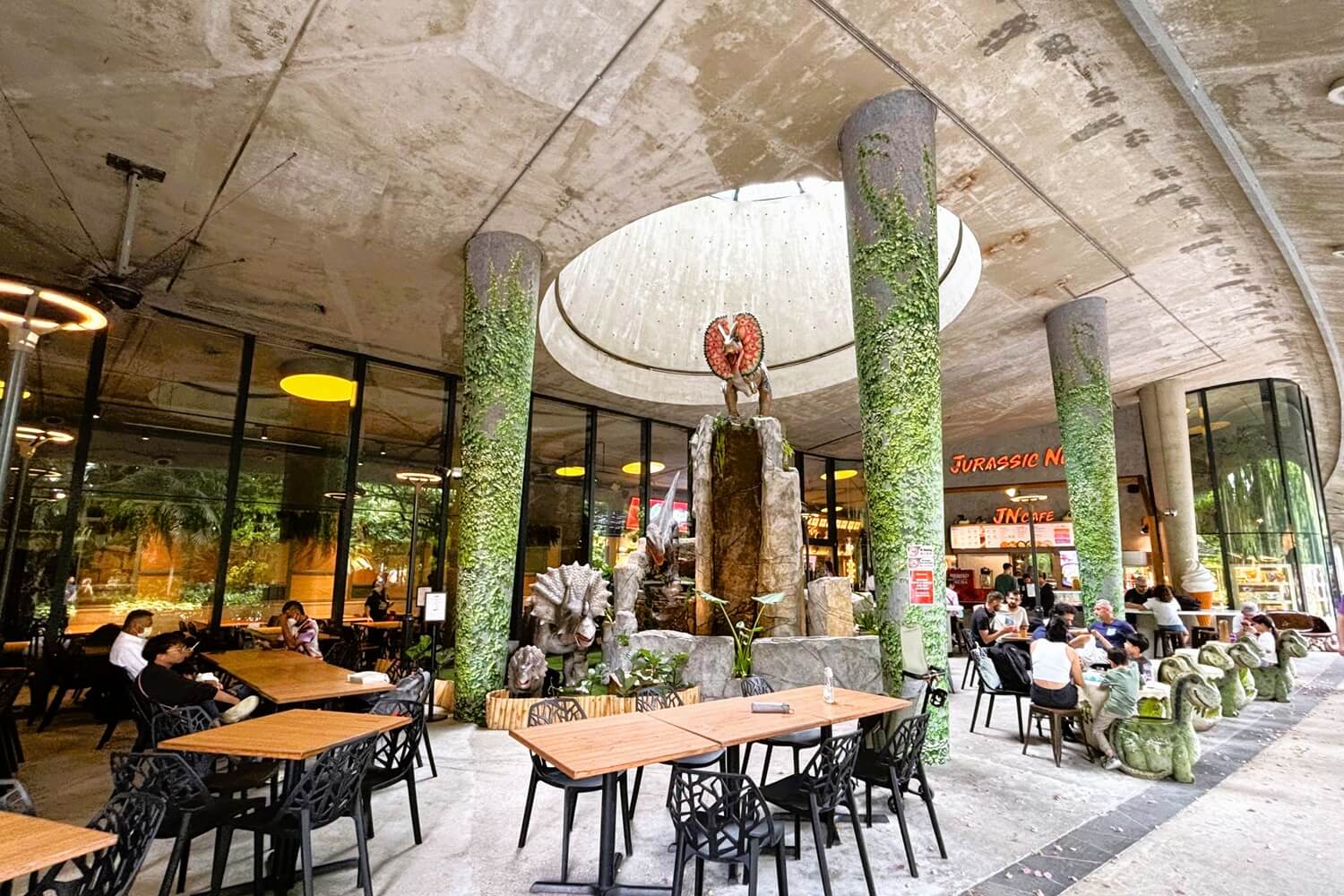 スーパーツリーの周辺にはスターバックスやマクドナルドなどのチェーン店も近くにありますが、おすすめなのが「ジュラシック・ネスト(Jurassic Nest)」。ここは恐竜をテーマにしたユニークなフードコートです。