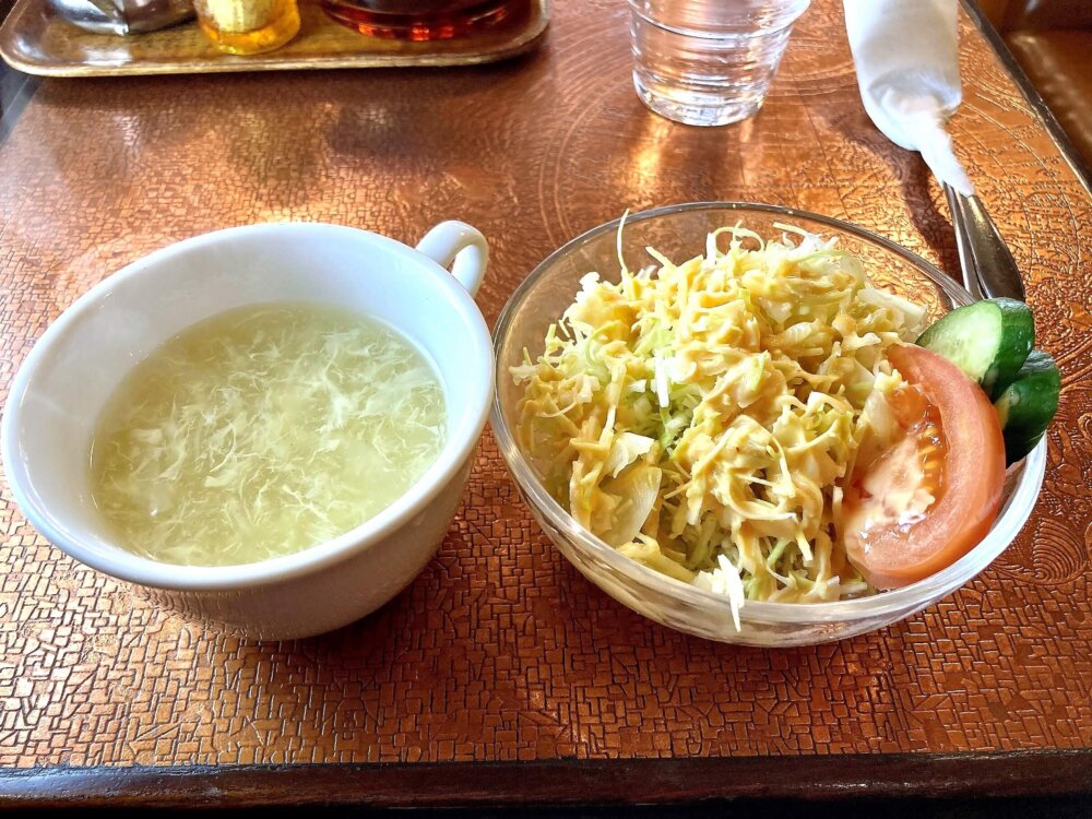 まずスープとサラダが振舞われます。メインが出てくるまで待ちぼうけを食らうことはありません。シャキシャキ野菜と、とろ~り玉子スープをいただいていると…出てきました!