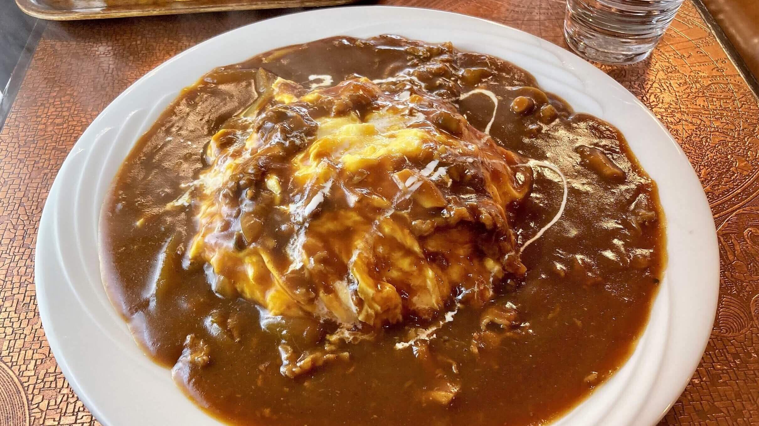 ここのオムハヤシ、食べ出すと止まらないんです。ボリュームがあるので食べることに集中するということもありますが、おいしいのでどんどん箸が進みます(スプーンが進むですね)。